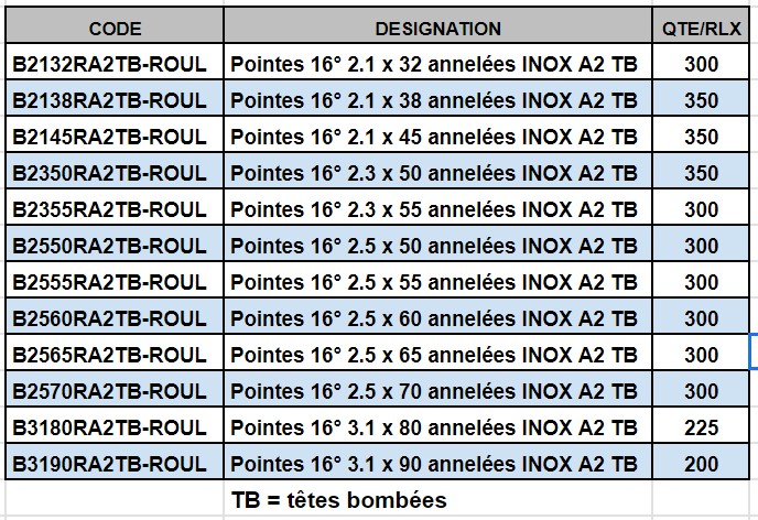 Avis sur "Pointes rouleaux 16° INOX têtes bombées en vente par 1 rouleau"